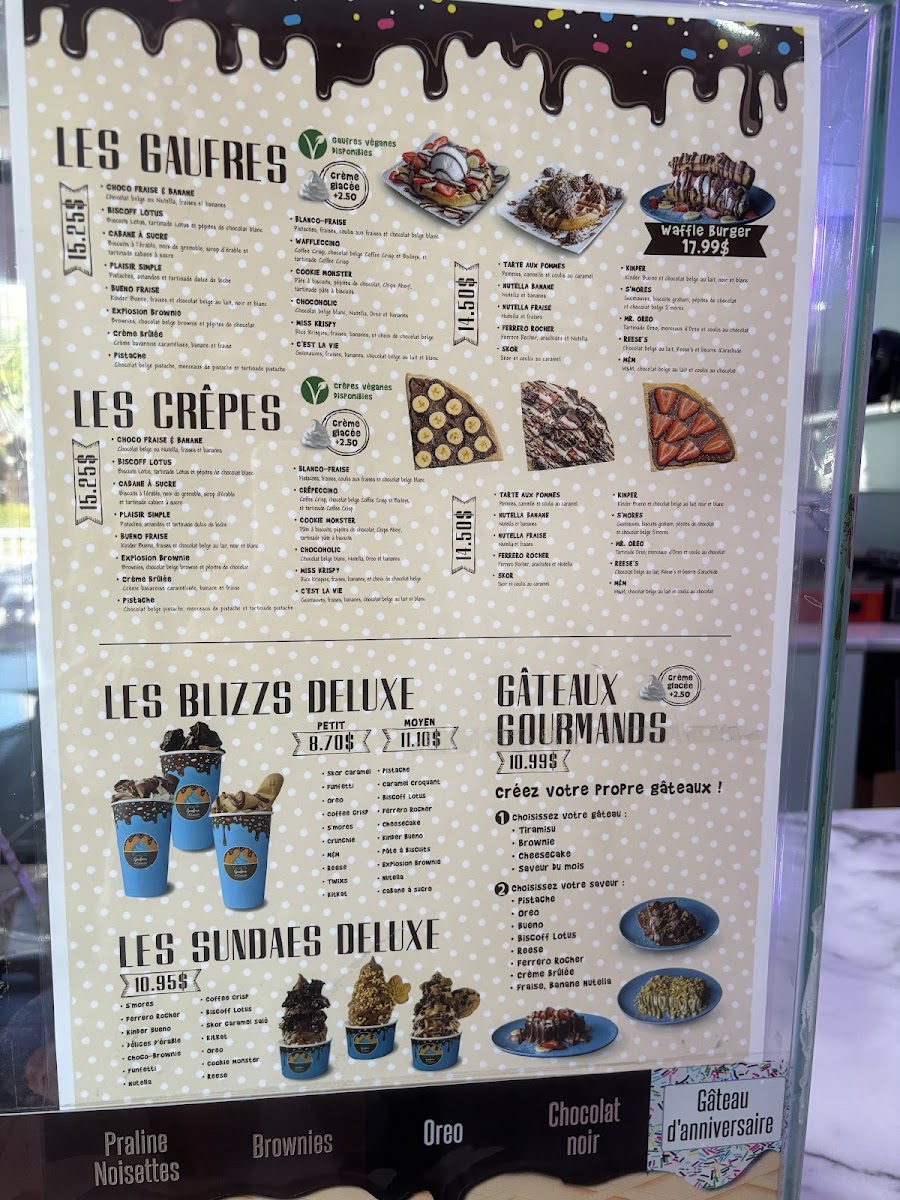 Gaufres et Glaces Longueuil Menu